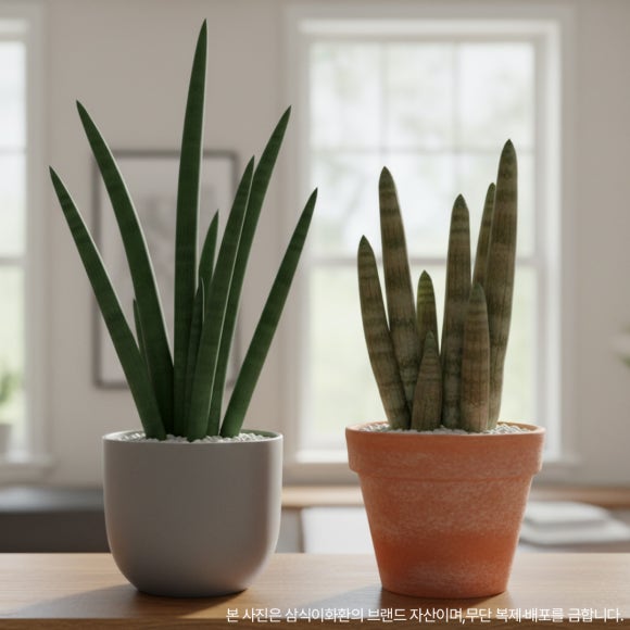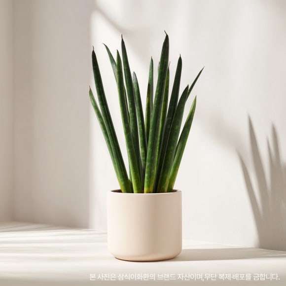 다른 관엽식물처럼 잎이 퍼지거나 늘어지지 않아요. 수직으로 쭉 뻗은 형태라 공간을 차지하지 않으면서도 존재감이 있죠. 미니멀한 인테리어에 특히 잘 어울려요. 모던한 화분에 심으면 그 자체로 오브제가 된답니다.